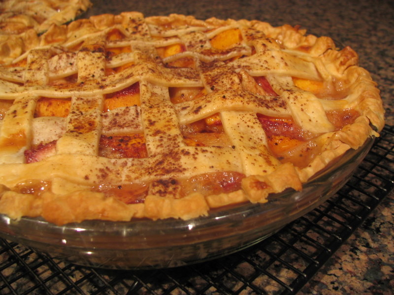 DH came to the rescue, as he usually does in fruity situations. As a matter of fact, if a pie has a lattice, then you can be sure I wasn’t involved. This time I took a completely secondary role, washing the dishes and admiring my beloved’s skill producing two gorgeous pies after 10pm on a work day. Sorry, ladies, he’s definitely taken! 😉