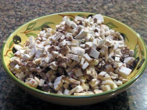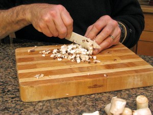 Duxelles. Some recipes advise to use a food processor to cut the mushrooms. Please, do not. You’re making an amazing meal, and details like cutting by hand will make sure it turns out great. I’m of course lucky to have a sous-home-chef always willing to help me… He dices the mushrooms and squeezes them dry for me. Isn’t that amazing?