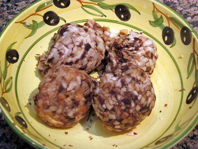 Comments: The first time we cooked this dish, we made puff pastry from scratch. We had a weekend all by ourselves, and we enjoyed the full preparations: Puff pastry on Saturday, refrigerated overnight, and the wellingtons on Sunday. It was a memorable dinner, and we loved it, but we also realized that we made a small mistake: the duxelles mixture wound up on the bottom of the package, and the pastry became soggy during baking. The foie gras and duxelles belong on top, to release fat and moisture over the steak, not into the pastry. The second time we made the dish we again made puff pastry from scratch, and invited two couples for dinner. It went very well, but I had problems with the amount of pastry, and ended up opening a frozen package to wrap the last two pieces. If you’re a novice at puff pastry, don’t make it for a big dinner party, practice on your partner first! 😉