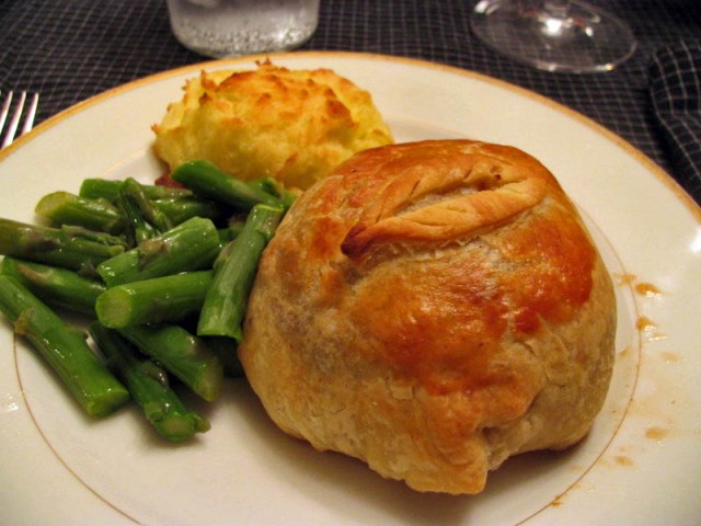 This year we chose Beef Wellington for our family’s Christmas Eve dinner, served as Evelyn George used to do it in my husband’s favorite restaurant, “The Carriage House” of South Bend, Indiana: with duchess potatoes and a wine reduction sauce. Fresh asparagus completed the meal.