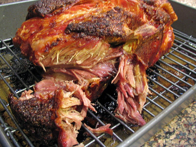 The ideal piece of meat for pulled pork is a bone-in pork butt, which, contrary to popular belief, does NOT come from the rear end of the pig, but from the shoulder. Isn’t English an interesting language? 😉 You can also use a picnic roast, which comes from the same region, but has a different shape. You can read about pork meat nomenclature by clicking here.