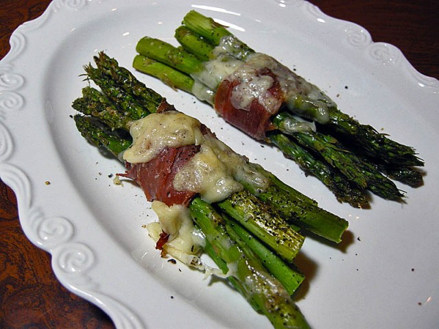 ASPARAGUS BUNDLES WITH PROSCIUTTO AND PARMIGGIANO