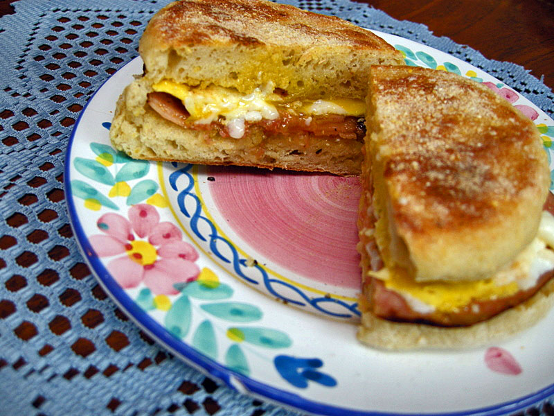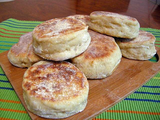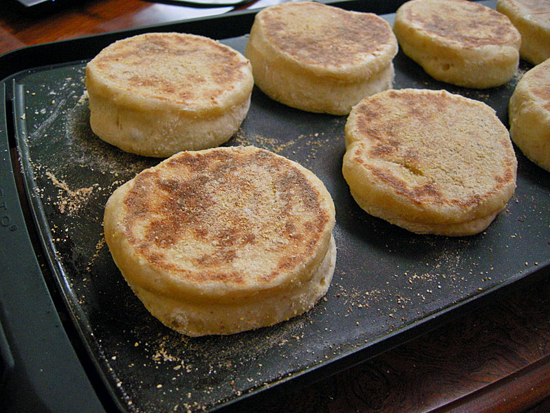 After three cycles of quick kneading, the dough rises undisturbed for an hour and a half, then is rolled 1/2 inch thick, and cut in circles. Initial cooking on a very hot griddle, 4 to 6 minutes per side, produces a beautifully golden crust on the surface…