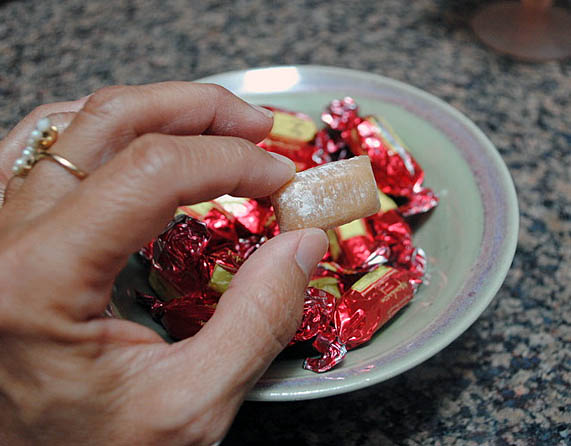 The outer shell is hard; you can either bite it right away or let it slowly dissolve in your mouth until it breaks and releases its treasure: sweetened, condensed milk! I’m partial to the second protocol, but sometimes I’ll devour one just to get that mixture of crunchy shell with the condensed milk… aaahhh the simple pleasures…