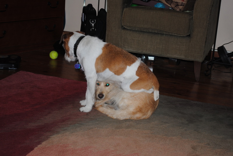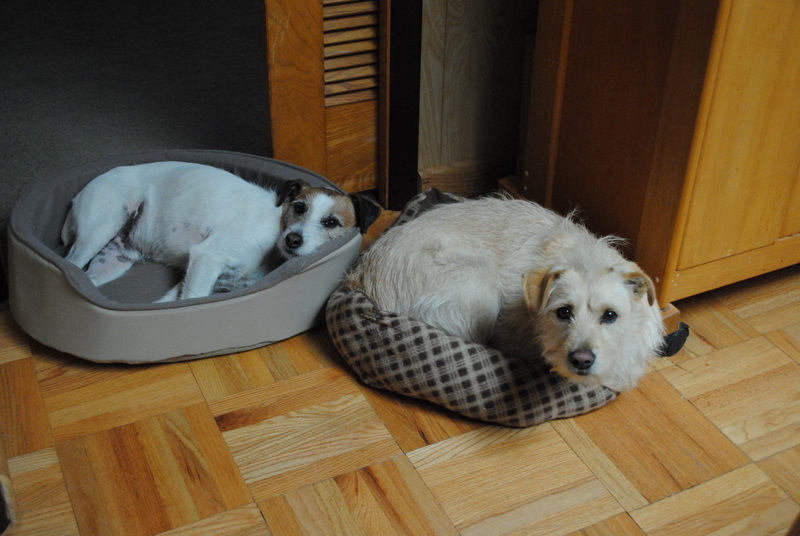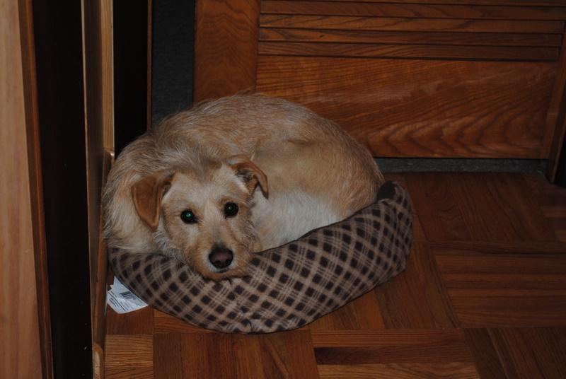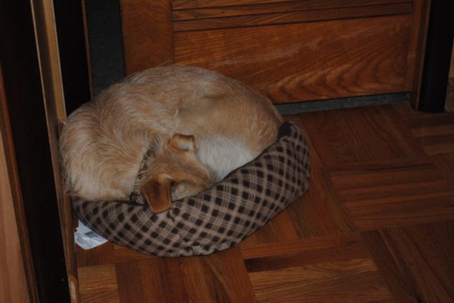 A couple of weeks ago we bought a small dog bed for Buck, as he loves to lay near the kitchen island, having learned that pieces of tasty stuff miraculously rain from above around that neighborhood. But the bed got intense competition from Oscar, who doesn’t quite “get” that the bed is not big enough for him.