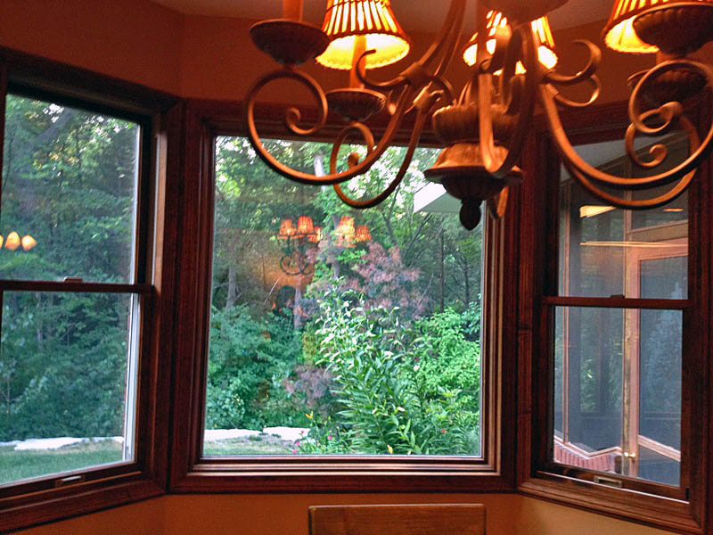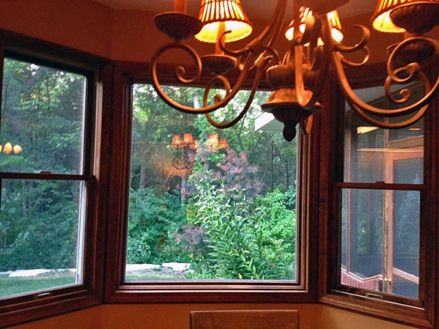 I close this post sharing two photos from our new home: the view from our kitchen window, and a spot at the corner of our backyard. Just a teaser, we are not moved in yet, but sort of camped there for a couple of days last week. The two of us, a bed, a kitchen table. and the amazing performance of fireflies outside the window during the night…