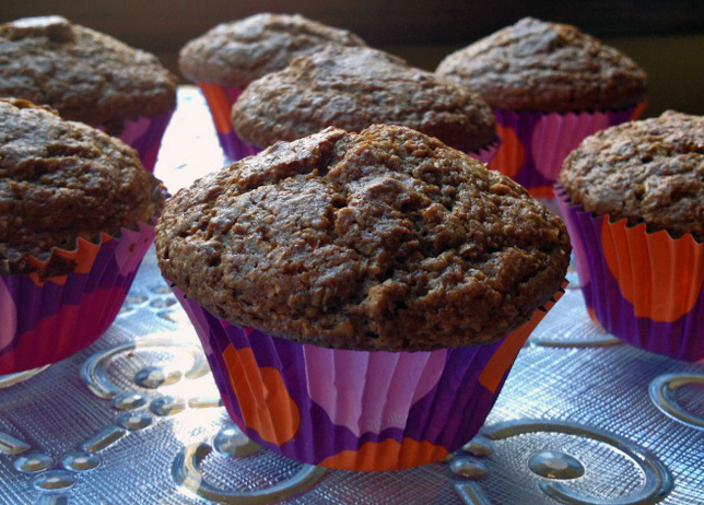Comments:  Between these bran muffins and the first one I blogged about, I think I prefer this batch because of the prominent apple taste that mellows the “hippie factor” of the wheat bran.  Did I hit the jackpot with them?  And by jackpot I mean bran muffins that match the ones of Phil’s past. Not quite yet there.  However, after almost 13 years of marriage, I finally got a hint on one of the issues: size.  The muffins he loved so much were bigger.  Size does matter after all!  A shocking realization.   But, here is the tricky part, in those days they did not make them gigantic. They were just slightly bigger. So, now I am on a mission to find a pan that will make a muffin somewhere between “regular” and “jumbo”.   As to taste, I am on the right track.  Raisins and walnuts, yes.  But next time, less apple, and honey instead of molasses.