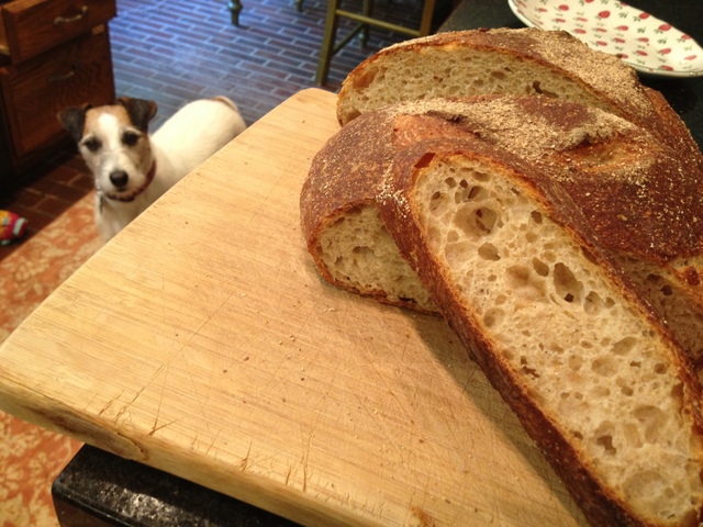 Buck, hoping that the Law of Gravity will act on slices of sourdough bread a little too far from his paws.