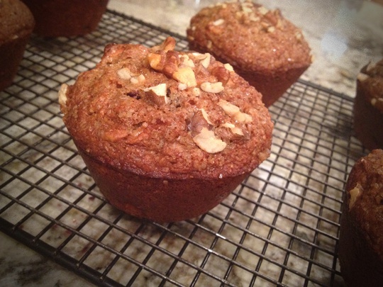 I would love to take full credit for coming up with the title of this post, but I can’t. “A Bran Muffin Stole My Heart” was the title of a blog post by Michelle published almost 3 years ago, and brought to my attention by a friend over on Facebook (thank you, Tracy!). After reading Michelle’s post, I had the intuition that this recipe would be a winner. For starters, it makes big, very big muffins. Then, it proceeds by crowning each muffin with a tempting sprinkle of walnuts and sugar, that gets irresistibly crunchy as they bake. I had to make a batch and put it to the test of my resident bran muffin critic-extraordinaire… 😉