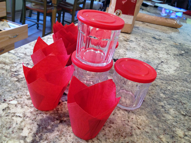 From my friend Cindy, who evidently knows me very well, a collection of gifts in one of my favorite colors, shocking red!  Aren’t these containers super cool?  And how about the baking paper cups?