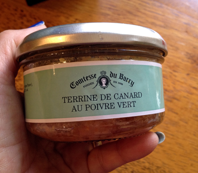 Terrine of duck with green peppercorns… no, not foie gras, we went a little more wallet-friendly.  This is waiting for a good opportunity to come out and play, possibly in a future dinner party.