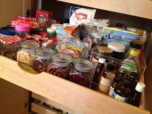 The pantry received some more special attention, it is not easy to see in the photo, but some clear plastic boxes are now holding items that belong together (baking stuff, dried fruits, extracts, etc).