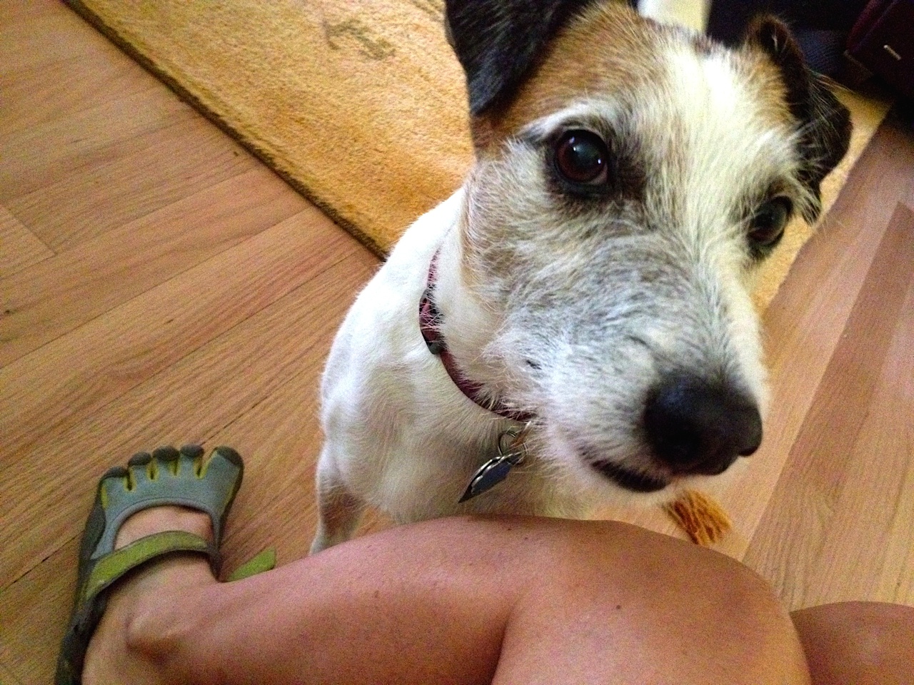 Oscar might think he is a superstar, but “I” am the only one who goes running with Mom & Dad. Whenever she sits down to put those funny looking shoes, I glue to her.