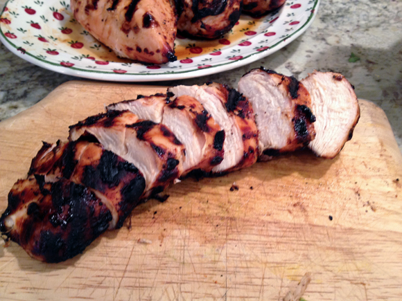 Comments:  First, my apologies for being unable to give immediate credit to the grilled chicken marinade.  I found it in the internet, thought I had bookmarked it, but instead I did a cut and paste of the ingredients and sent to myself by email.  (Palm hits the forehead!)  Since I clear my bookmark history every week, no luck tracking it down. (Head shake in disbelief…) Hopefully a lesson was learned. However, thanks to one of my dear readers, I could retrieve the source, and correct my mistake.  It came from Happy Food Happy Home. Cute name for a blog… 😉 Thank you, Nan, for finding the source for me.