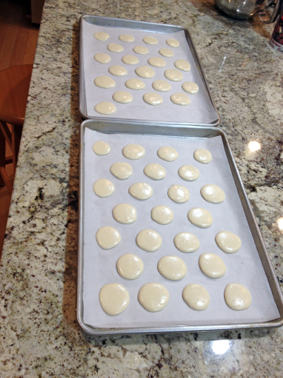 Working in the bowl of a stand mixer fitted with the whisk attachment, beat the egg whites and salt together on medium-high speed until the whites just begin to turn opaque. Little by little, add the sugar and keep beating until the whites are marshmallowy – blowy and white, and when you lift the whisk, they’ll form tipsy peaks.