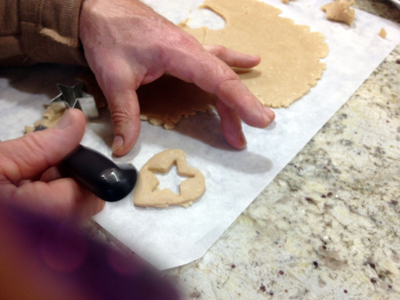 Anyway, I am honored to be part of the list of lucky bloggers invited to compose a post for her site, and it’s my turn to invite you to read about our adventure making Linzer Cookies! Our adventure, you might ask? Yes, this was a project Phil and I tackled together on a chilly Sunday morning. Fun, fun, fun… and mighty tasty!