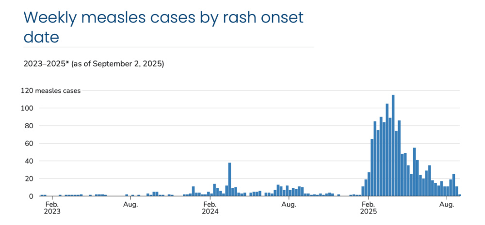 Final words on the importance of vaccination. When you are sick with a bacterial infectious disease, you can take antibiotics to get rid of it. The antibiotic will do good for you, but only you. The beauty of vaccination is that when a person is immunized then others share the benefits, including individuals that are un-vaccinated. Think about newborns, about those undergoing cancer treatment, or suffering from immuno-suppression of some type. The mechanism behind this side-benefit is called “herd immunity”. When a large enough proportion of individuals in a population becomes immune to an infectious disease (either viral or bacterial), the disease will have difficulty spreading. In other words, even those non-vaccinated persons get protection by the low probability of encountering the pathogen. Now, what anti-vaccine advocates seem to think is that their kids don’t need to be vaccinated because other “fools” are doing it, so their kids will be OK by default. However, herd immunity will not be maintained unless the proportion of immunized people is kept at the target level. This proportion is not hocus-pocus, it’s a carefully calculated number, based on the infectivity of each pathogen. The index used for this calculation is called “Reproductive Number” and reflects the measure of how many people can potentially be infected by a single sick individual. For measles, a highly contagious disease, this number is around 15. Mathematical calculations using the Reproductive Number show that for measles, a level of immunization of around 90 to 95% is required to sustain herd immunity. Less than that, and the disease will not be kept at bay. You can read more about how the calculations are made by clicking here.