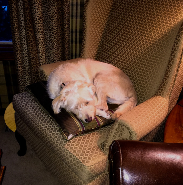 Chief will be exactly 16 years and 9 months old when this post goes live. He still sleeps a lot, perhaps most of the time, either on his comfy soft bed or sometimes outside in some type of improvised bed designed by his brothers. He used to dig tunnels underneath fences and show up yards away on the other side, but cannot dig anymore with his weak arthritic legs. Clearly, his instinct to get comfy is unchanged by aging.
