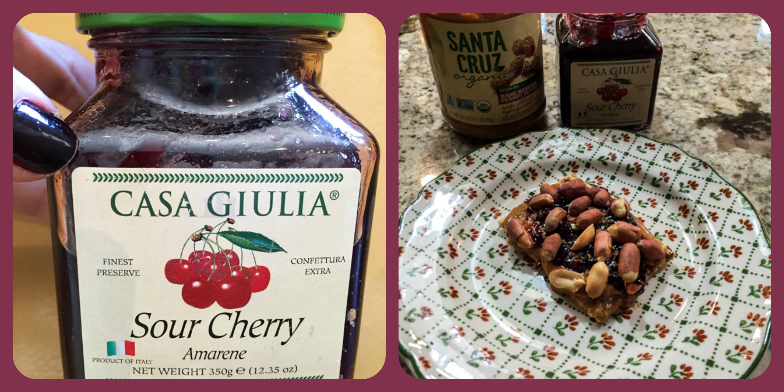 Phil is always finding interesting jams and preserves to pump up his lunch.  Sour Cherry Preserves from Casa Giulia are on top of his favorites list right now.  He loves to take a Wasa bread or a nice cracker, spread peanut butter on top, add a smear of sour cherry preserves, and top it all with peanuts. Keeps him satisfied until dinner time.