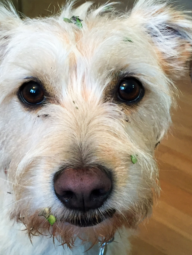 Hi, my name is Osky, and I made my Mom late for work because after five minutes outside I came back covered in burrs.  Mom says I am a big whiner and a sissy because of my crying as she cleaned me. She also said the neighbors would call the police thinking someone was being murdered in our home.  I agree with my Dad, Mom is the real Drama Queen around here.