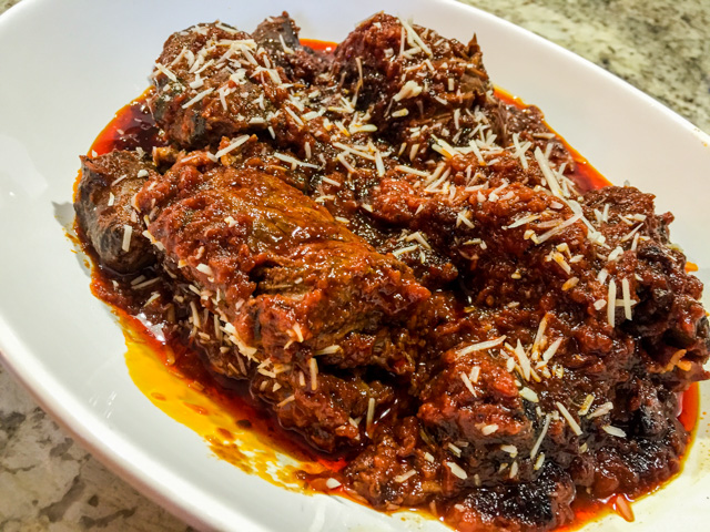 There you have it, a fantastic meal, meat falling apart tender, a sauce that tastes almost sweet from the long simmering. Comfort food, all the way…
