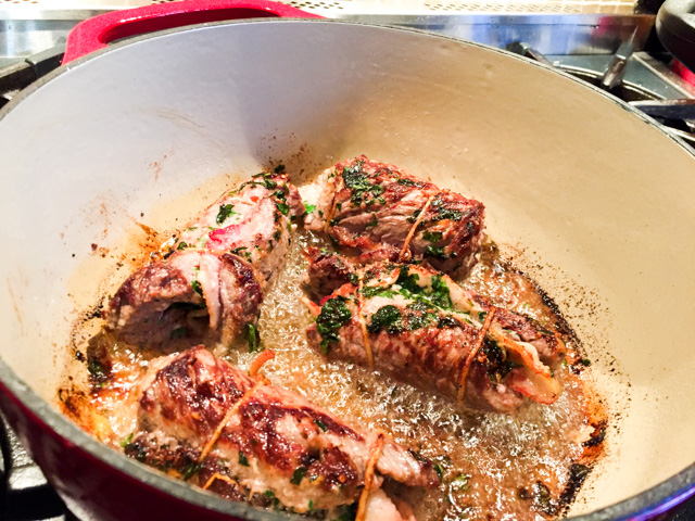 Apart from that, I followed the recipe to a T, and loved the outcome! The change in the sauce as it simmered down for 3 hours was a pleasure to witness. I made the gravy on Saturday, saved it in the fridge, removed the congealed fat from the surface on Sunday, and made the braciole that afternoon. Most important step? Browning them well before simmering with the sauce. A process that should not be rushed, allow the browning to take place and it will reward you with amazing flavor later. I promise.