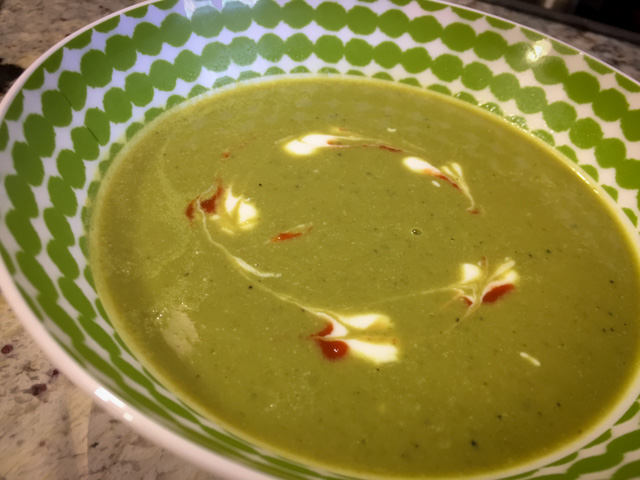 Add the water, close the pan, and simmer gently until the asparagus is fully tender, about 20 minutes. Transfer mixture to a blender (preferably high power), add the spinach leaves, and blend. The spinach will “cook” in the residual heat of the soup. Return soup to pan, add the coconut milk, simmer until heated through. Squirt a little lemon juice right before serving. Adjust seasoning, and…
