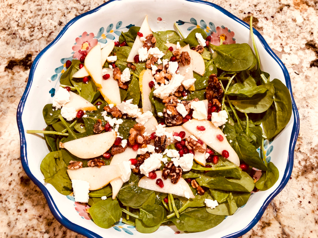 SPINACH SALAD WITH PEARS AND WALNUTS