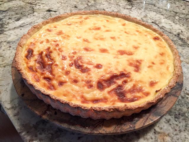 Comments: I really liked the way this tart is prepared, freezing the crust and adding the custard to it still frozen. It baked very nicely, absolutely no soggy bottom, perfect texture. I did not have to protect the edge with foil, but watched it closely as a hawk in the final minutes, those brown spot start to show up pretty quickly.