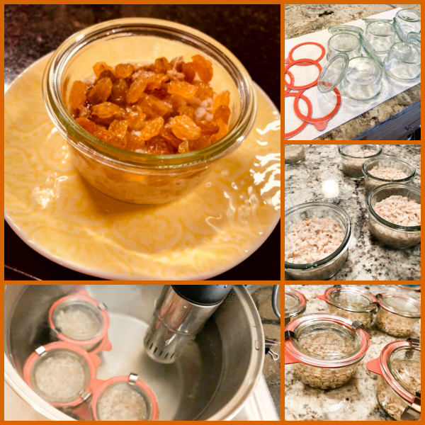 Comments: I now realize that texture was my main issue with oatmeal. For some reason, even after cooking for so many hours, the sous-vide results in oats with the exact amount of bite for my taste. I still prefer to have them later in the day with a fried egg on top. I call it light lunch. The jars, once ready, can sit in the fridge for a few days. When you are ready for breakfast (or any other time of the day you feel like it), pour the contents in a bowl and warm very very briefly in the microwave. Add the toppings you love and you are done. Golden raisins and a touch of brown sugar is a nice combination, and yes, I’ve had that for lunch more than once.