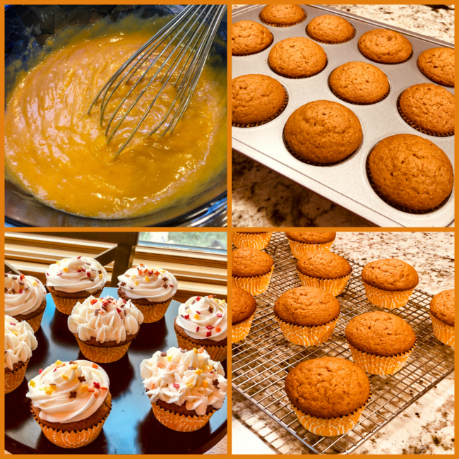 Comments: These are deliciously soft cupcakes, with the perfect amount and combination of spices. I used two different styles of piping trying to change things a bit, but the traditional swirl still gets my vote. I suppose if you want to go the more austere route, these cupcakes will shine with just a dusting of powdered sugar, so keep that in mind.