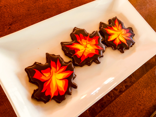 I will start with the Maple Leaf Chocolate Sugar Cookies, because I loved making them.