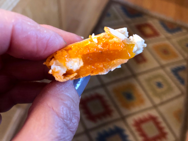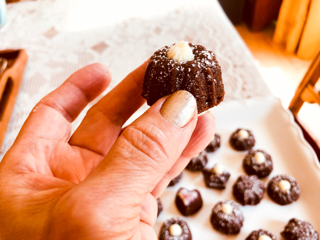 I loved the contrast of mango-gelee and the shell, plus the creaminess of the ganache around it. Infusing the ganache with shredded coconut gave it enough flavor, and more natural than coconut extracts, which often will give that odd sun-tanning lotion aura.