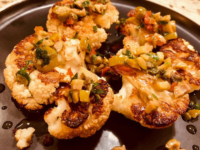 CAULIFLOWER STEAKS WITH OLIVE AND CAPER SALSA