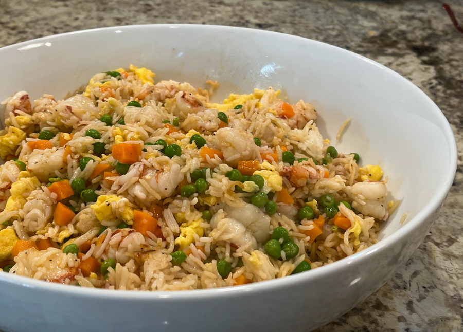 Comments: Above you see the rice I used, which was surprisingly tasty. I don’t normally buy this type of product but Karen’s post made me open my horizons. If you are in a hurry, this is the perfect shortcut ingredient. Same goes for the frozen peas and carrots. Leftovers were great next day too. I am a bit picky about seafood leftovers, but the shrimp held up ok. Not sure I would enjoy leftovers with salmon or another type of fish, but maybe your tastebuds are more user-friendly than mine.