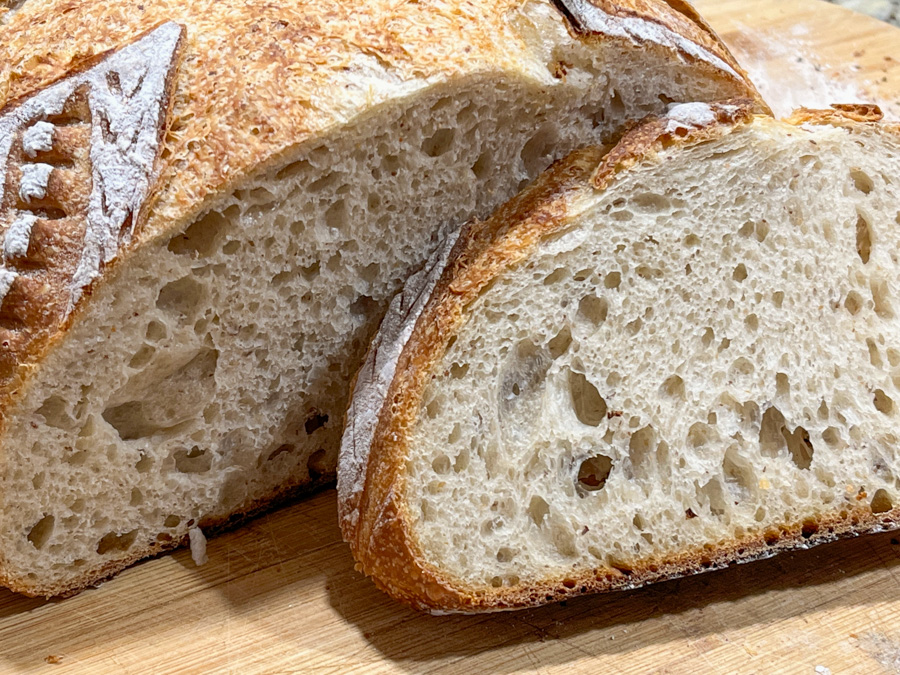 A delicious bread, with a slightly softer crumb, as the almond flour contributes some fat and helps retain moisture.