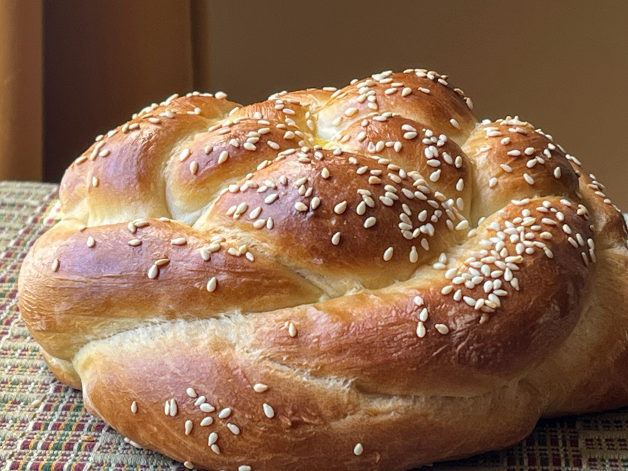 This is a great soft bread, ready in 2 hours! Uses instant yeast, and depending on the size of your pizza pan, you can have enough for 2 full round breads or go with a large round and the leftover used for a different shape of your liking. I opted for a 4-stranded braided loaf.