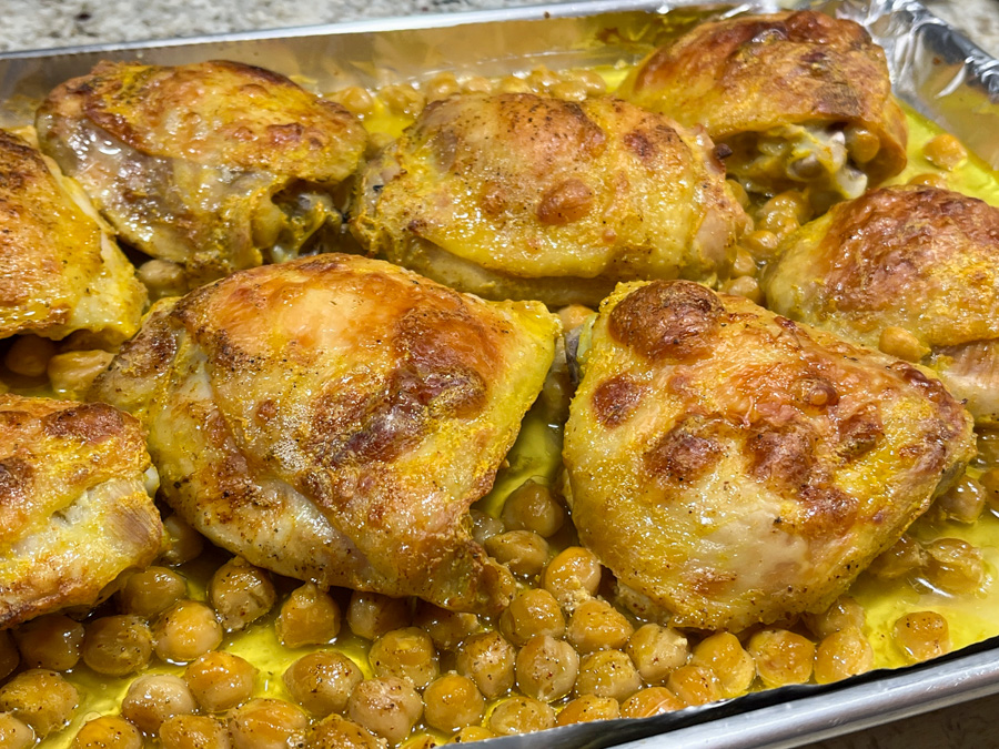 Comments: I have made this recipe three times already. It is great to add chickpeas to the baking sheet, they will cook together with the chicken juices and get all soft and tasty. Highly recommend you try this version. Just marinade the chicken and once you add it to the baking sheet place the chickpeas all around the pieces. I used canned chickpeas but it might be even better if you start from dry, soaking them overnight and draining before roasting. Your kitchen, your rules!