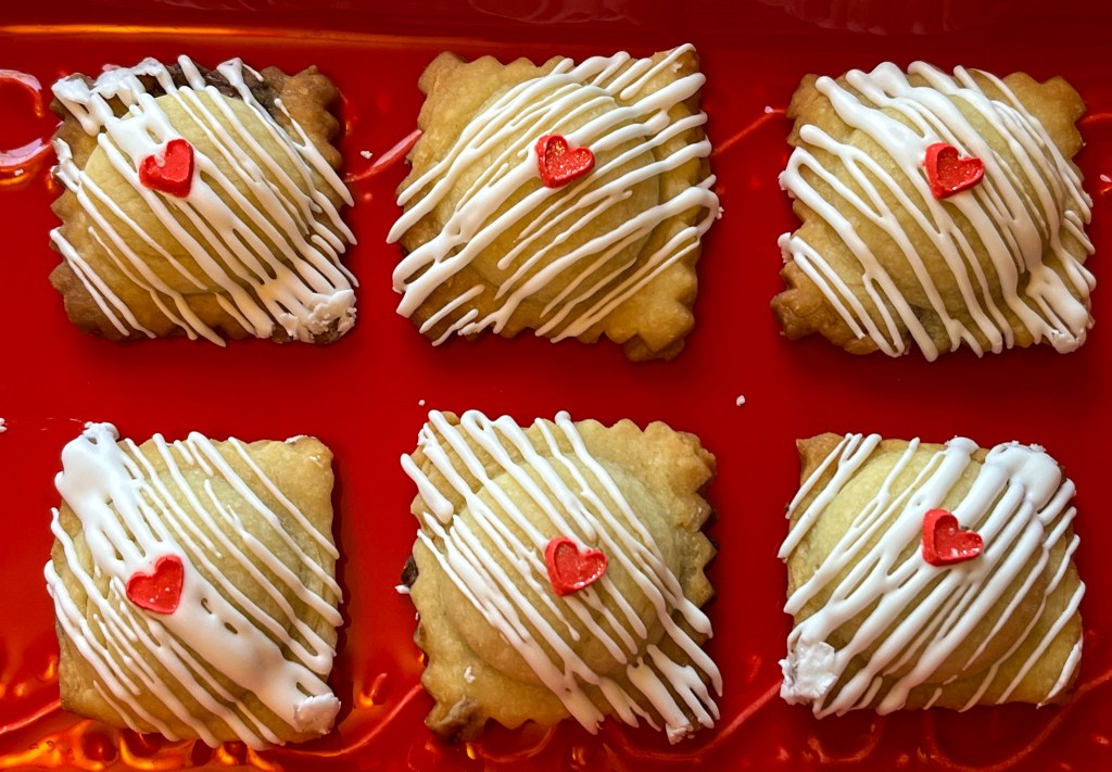 All I could do was try again with the second mold, the round one, using a heavier hand with the flour. I opted for Nutella for the filling, which was another bad decision, as it squirted everywhere as I tried to roll the ravioli shut. Messy, sticky, horrific. I managed to get six severely abused cookies from the adventure, and thanks to the miracle of Royal icing and sprinkles they were able to make a public appearance. It is a good thing you cannot see their bottoms (enough said).