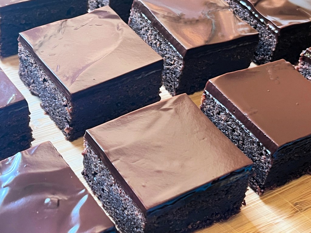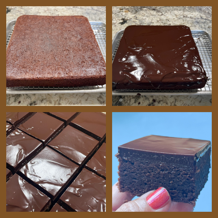 To get the recipe, pay a visit to her site, where you can get step by step pictures to guide you through the process. One of the tips she gives is pouring the smooth icing on the brownie after flipping it so that the bottom side is up. That ensures a super flat surface for glazing. It is all in the details, my friends!