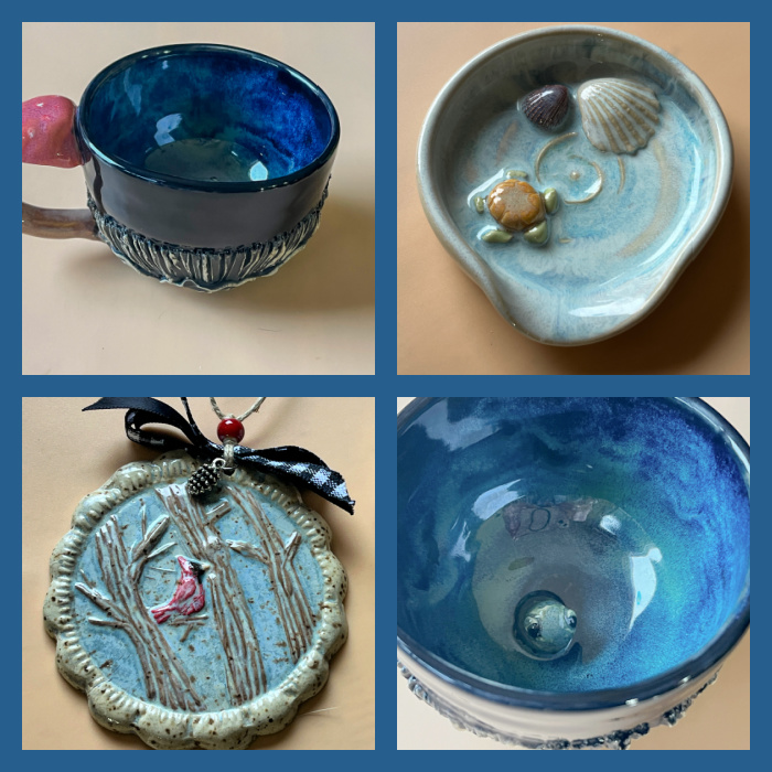 These amazing pottery pieces were a gift from Marlyn, former cookie decorator wizard, turn Pottery Art Extraordinaire. The teacup has a tiny little frog peeking from the bottom and I adore it. This was a gift that left me speechless when I opened the package. Thank you, not only for the gift, but for everything you taught me over the years. I never get tired of seeing your beautiful productions online, and now I am the proud owner of some of them!