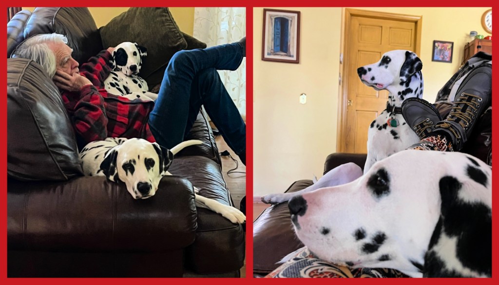 But even with all the trouble, the pups are a ton of fun and keep the Humans happy, either watching their favorite shows on TV….