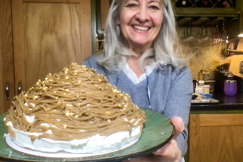 First things first! Great new photo of you . . . uhuh . . . the Mont Blanc also! have not made one for ages and mine never looked as ‘inspired’ as yours ! Both your top and the cross-cut look better than mine ever did . . , your darling husband does get good ideas . . . 🙂 ! ( am grinning – you sent me a photo of you, Prince and Star nearly two years ago when I came out of hospital . . . I am quite a neat person and decorator but that pic is still sitting at the side of a big glass door I can see as I type !!!