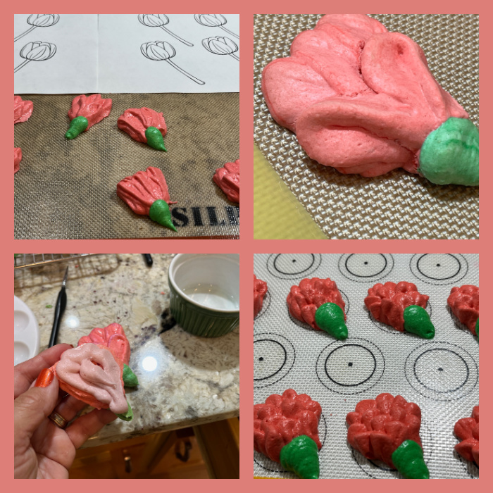 Heat oven to 200°F and line two baking sheets with parchment paper. Combine the egg whites, cream of tartar, and salt in the bowl of a stand mixer fitted with the whisk attachment. Whisk on low to combine, then turn the speed up to medium and whip until frothy. With the mixer is still running, add the sugar in small increments. Once all the sugar has been added, turn the speed up to high and whip until the meringue is glossy, thick, and holds stiff peaks, about 3 minutes.