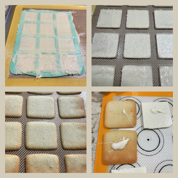 Place the butter and sugar in the bowl of a mixer. Beat until light. Add the egg yolk and vanilla and beat to combine. Add the flour mixture and beat on low just until completely incorporated. The dough should be good to roll out but if it is too soft, refrigerate briefly. Place the dough between two large pieces of waxed or parchment paper. Roll the dough to abut ¼” thick. With a 1 ½” round cutter, cut the cookies out, keeping them close together.