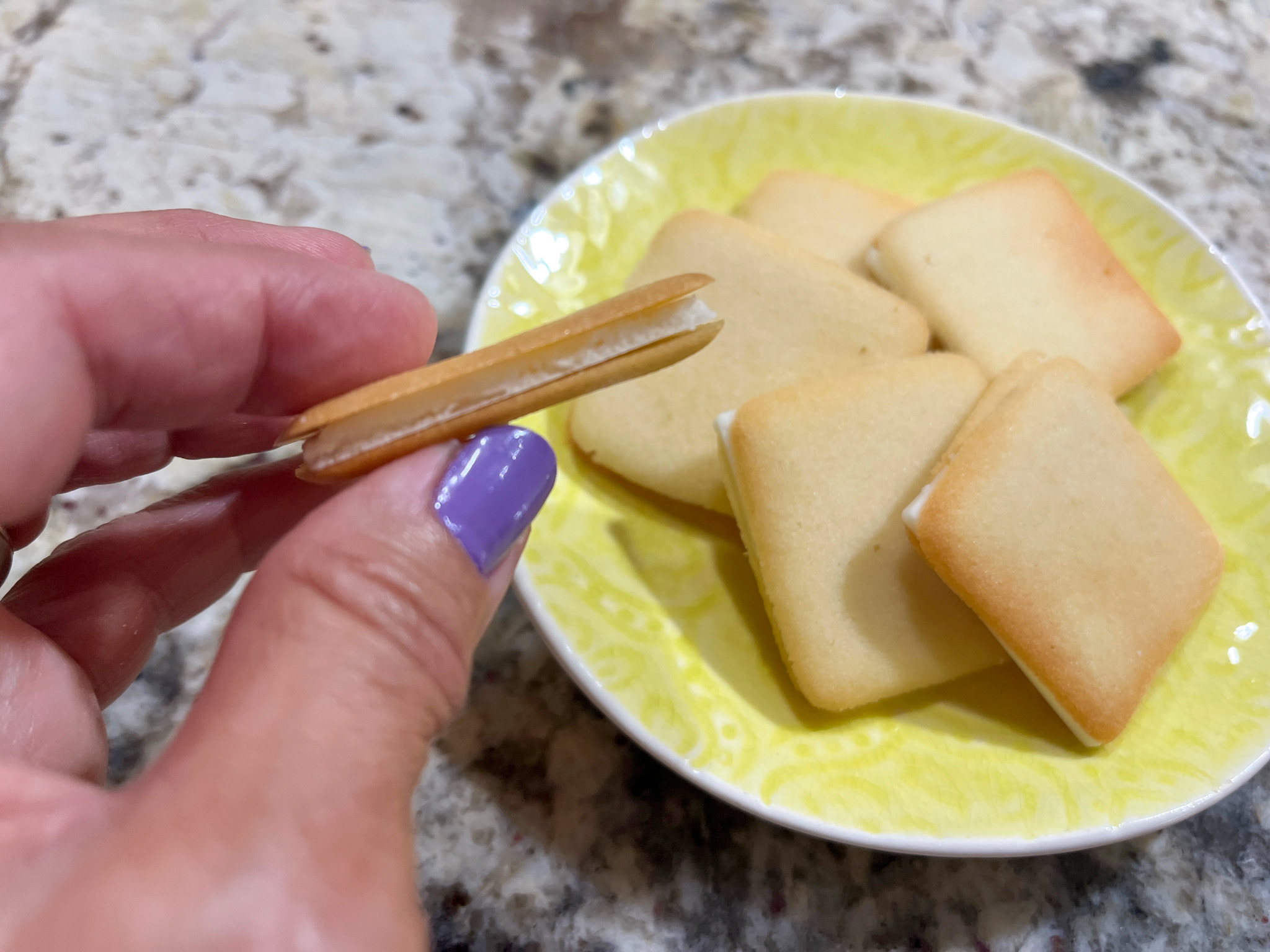 Comments: These cookies are so delicious that they can stand on their own without the filling: nutty, great texture, not too sweet. I advise you to stop by Helen’s site so you can see all the detailed pictures and step by step instructions. I love the way she adds gelatin to a store-bough concoction to make it perfectly set in the sandwich cookie. I don’t like fillings that ooze out when you hold or bite into the cookie. She definitely knows all the great tricks in the baking world… I omitted the showering with powdered sugar, as they are easier to box and share without the sugar coating. Excellent cookies, make sure to give this recipe a try. As I’ve said many times over the years, you cannot go wrong baking with Helen!