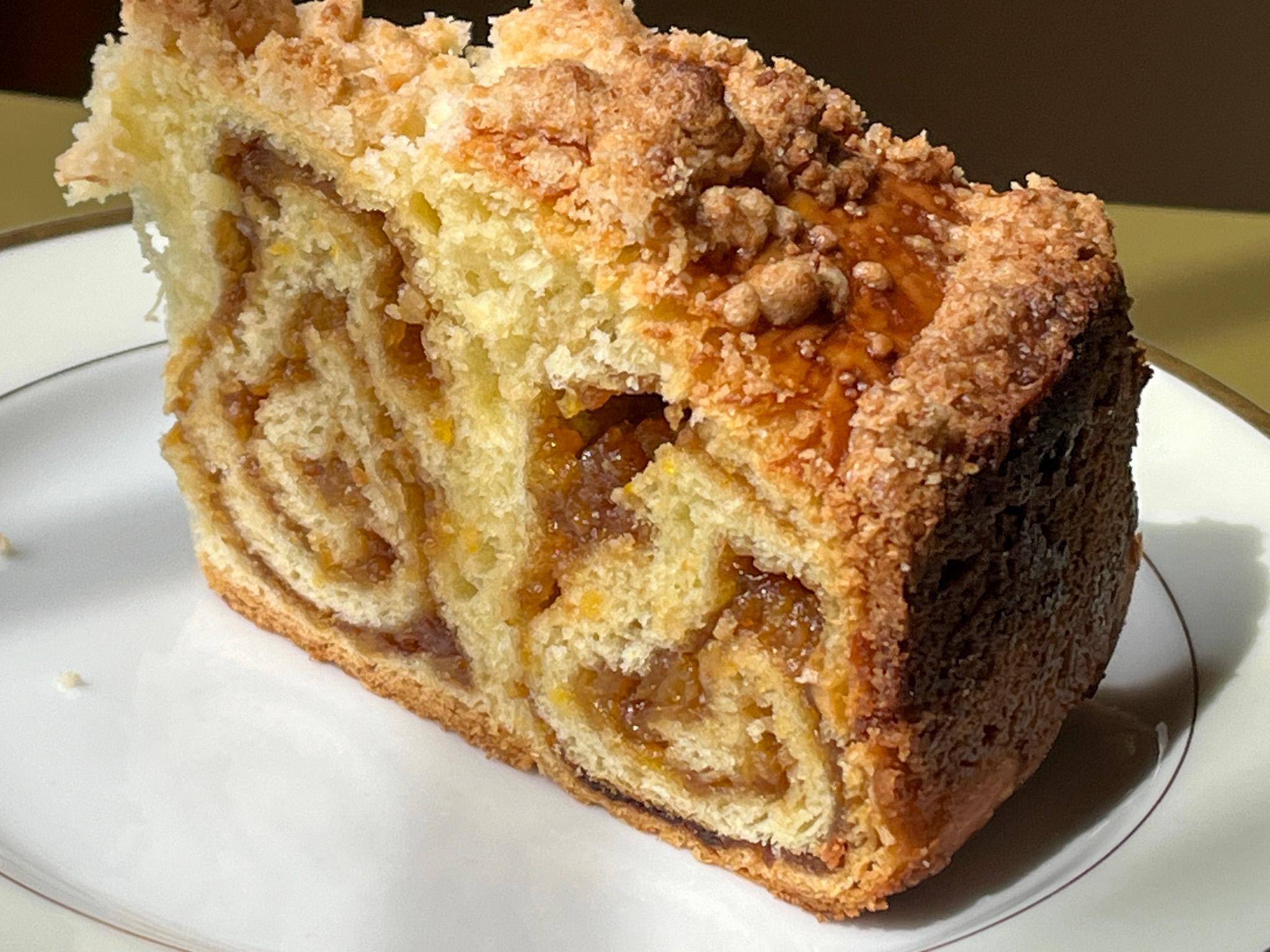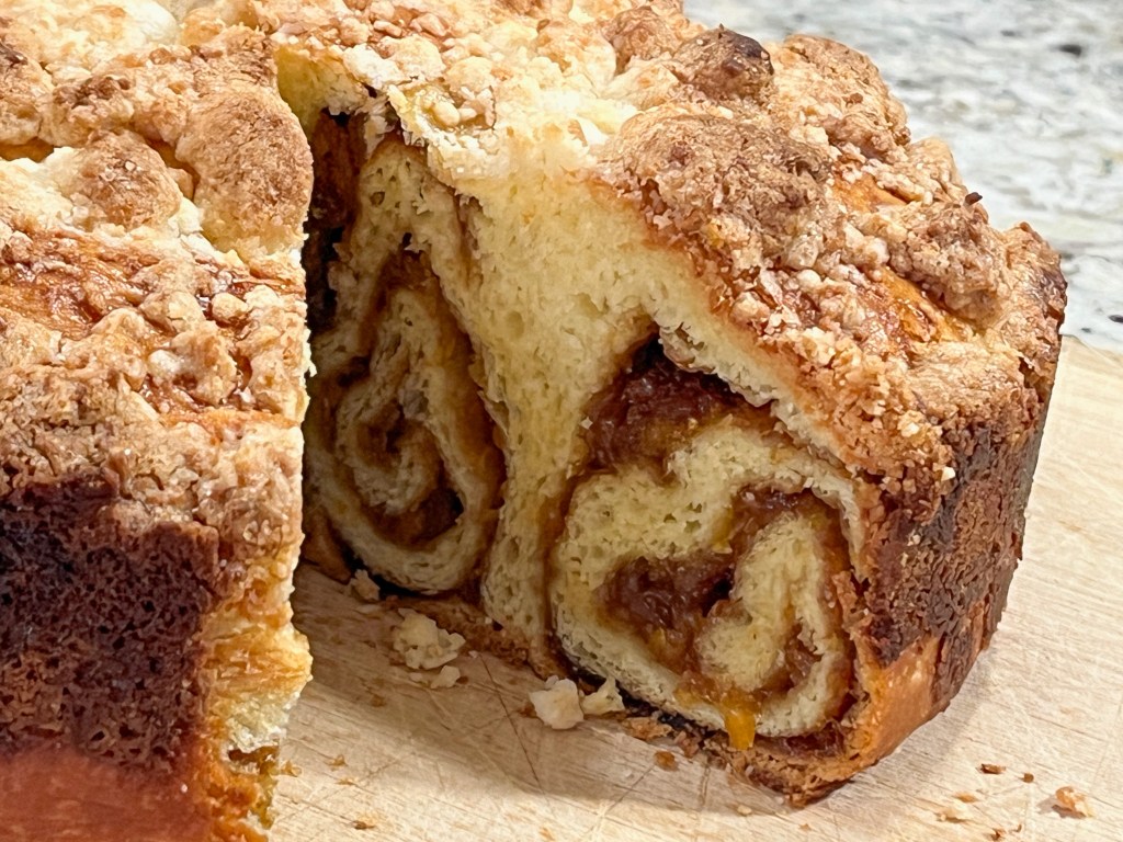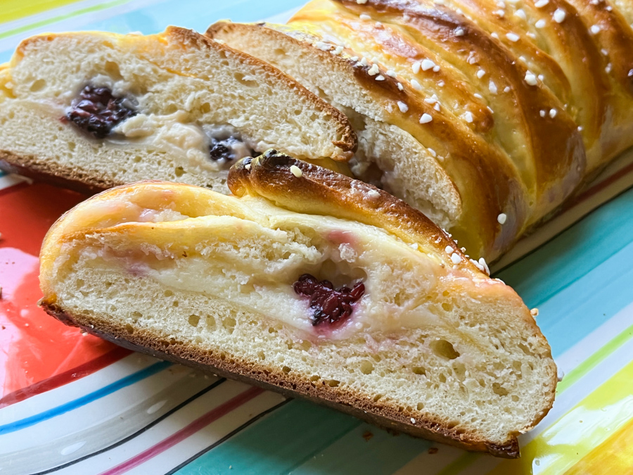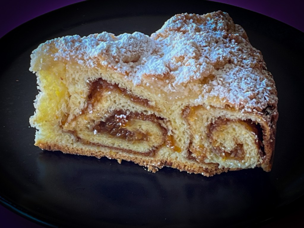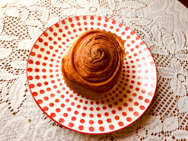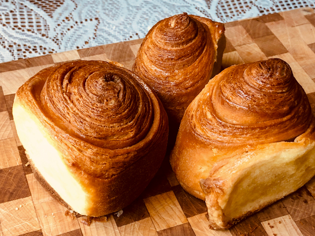 The picture above is slightly out of focus, but when I noticed it was too late and I did not want to cut another one, as they were to be donated later that day. The dough has the right amount of sweetness, and the pistachio cream complemented it well. I highly recommend you play with this recipe and come up with new combinations of flavors and shaping.