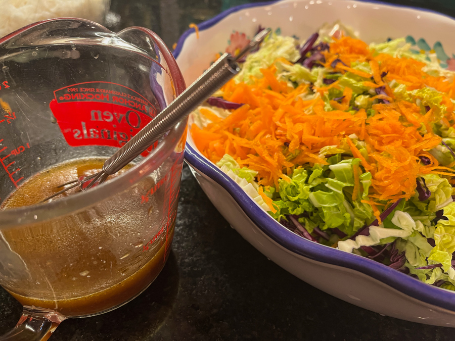 Comments: My friend Tracy a couple of months ago mentioned that cabbage is a great alternative to low-carb “noodles” if you get tired of zucchini. I am a huge fan of zoodles , but decided to give her idea a try, and I can see why she loved her Pad Thai so much when lightened up with thinly sliced cabbage. It absorbs any flavor you use for a sauce, and the texture is quite pleasing. I don’t follow any particular type of diet, but tend to favor lightening the carbs whenever possible. In this case, it matched well the meatballs in their Oriental ways. I served ours with air-fried butternut squash that was leftover from another meal.
