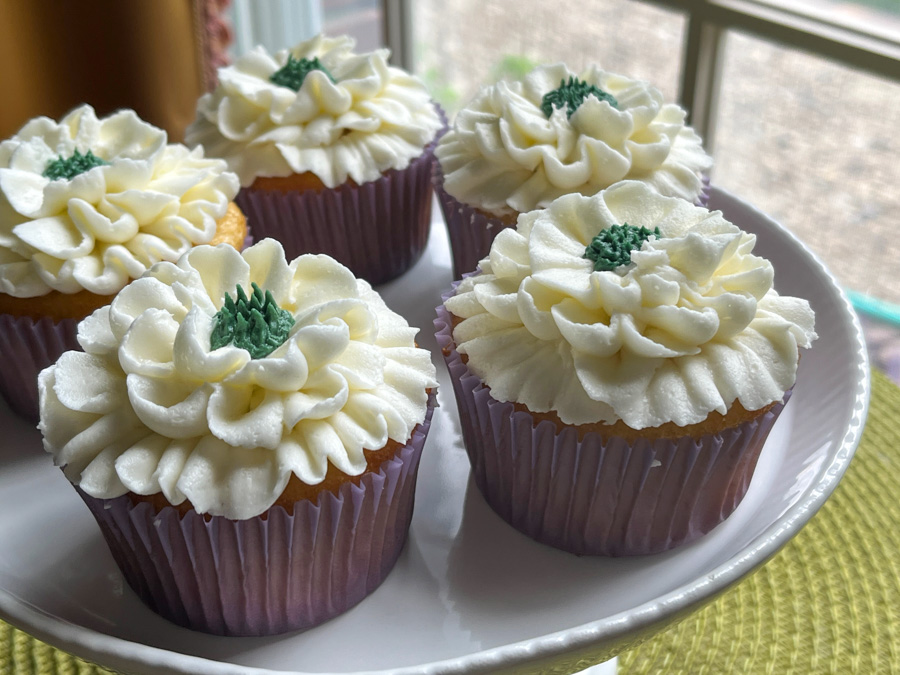 For several months now I’ve been including cupcakes in my weekly box of donations. I try to vary the buttercream component and come up with different styles and colors each Friday. Because variety is the spice of life, right?