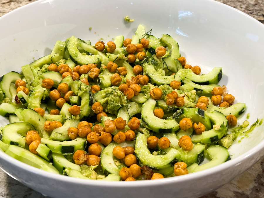 CUCUMBER & CRISPY CHICKPEAS WITH AVOCADO DRESSING